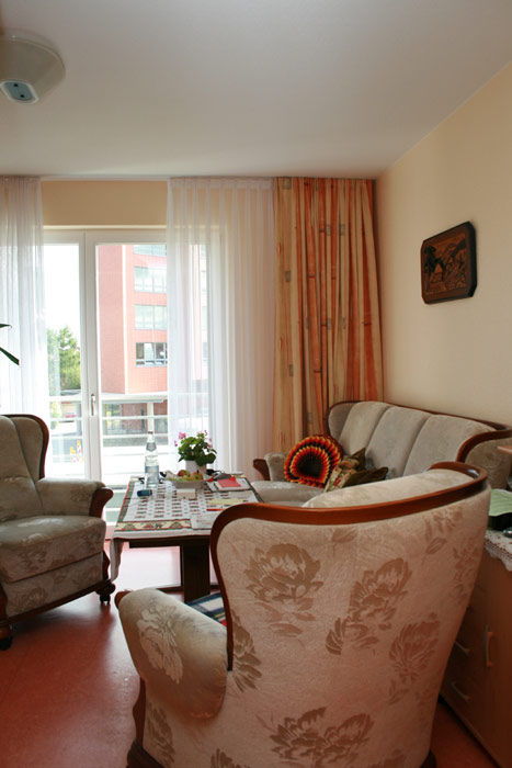 Jeder Wohnbereich verfügt über einen eigenen Speiseraum, in dem die Mahlzeiten, sofern möglich, gemeinsam eingenommen werden. Zusätzlich haben unsere Bewohner eine Sonnenterrasse zur Verfügung, die mit Gartenmöbeln und Strandkorb ausgestattet ist und zum Verweilen an der frischen Luft einlädt.